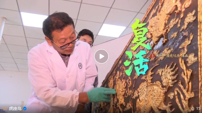 为了修复这把漆扇,杜道子先是花了很多时间把图案的含义一点点弄懂,将缺失的部分准确补画出来,然后花了大量时间精描细绘、精雕细刻,最终还原了它的惊艳模样。