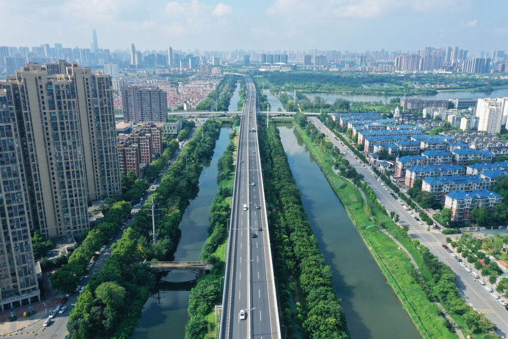 图为治理后的机场河。(无人机照片)(翟岩 摄)