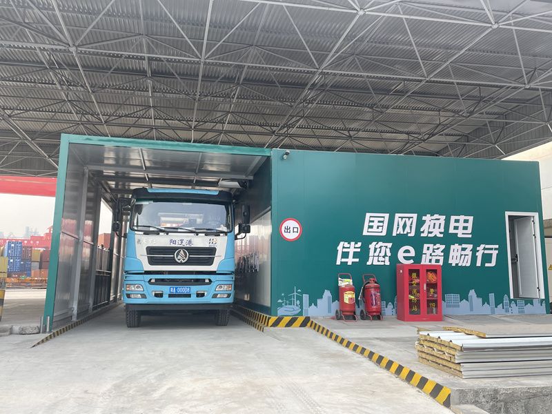图为刚建成投运的阳逻港集装箱卡车换电站。