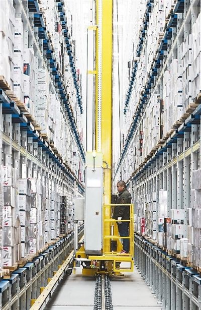 河北省邯郸市永年区,一家紧固件生产企业的智能仓储车间内,工人在操作设备装卸货物。通过部署智能物流与仓储设备,企业实现精细仓储管理,显著提高了运营效率。