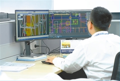 浙江省杭州市,一家装备制造企业的产品工程师在用软件设计图纸。借助应用设计软件和知识模型库,企业对产品进行数字化研发与设计,缩短了研发周期,提高了设计效率。