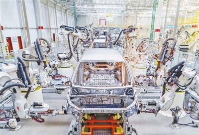 山西省运城市,大运新能源汽车的冲焊车间内,智能焊接机械臂在进行车架焊接作业。近年来,运城市大力发展汽车产业,打造绿色环保、智能化的智慧生产线,让数字技术助推产业升级。