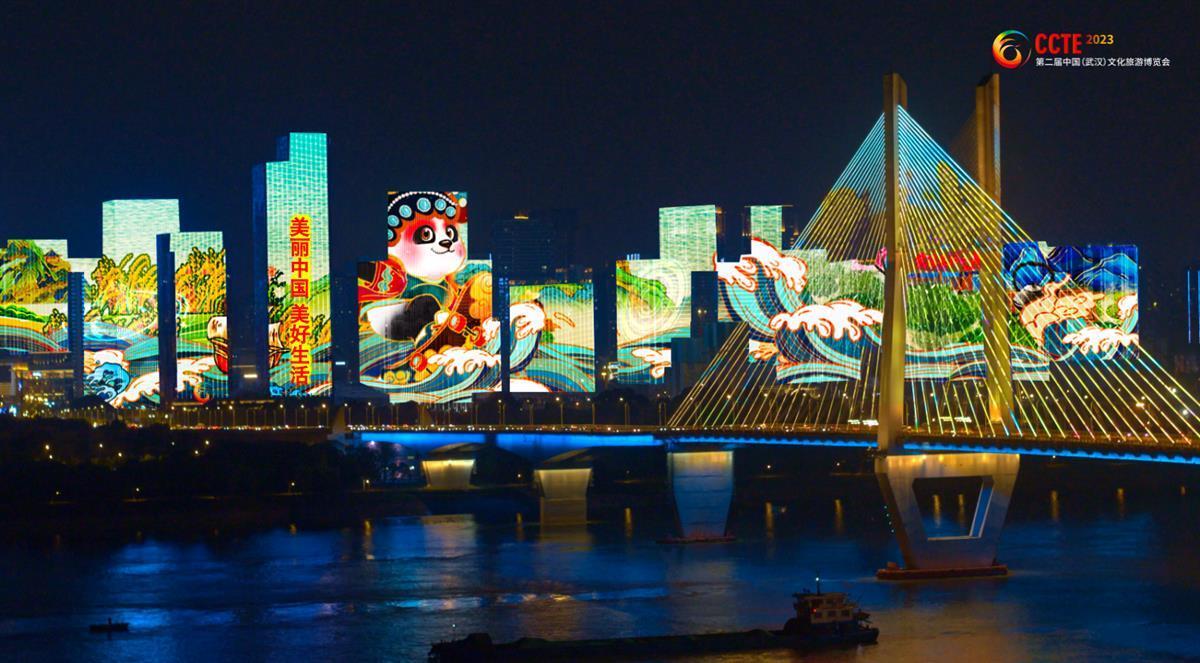 据武汉文旅集团介绍,此次文旅博览会主题灯光秀将以“大江大湖 英雄武汉”“山水知音 相会湖北”“大美中国 绿色神州”“缤纷世界 大河文明”“文旅融合 美美与共”五大篇章,生动展示了从荆楚到华夏、再到全球的大美风貌、悠久历史和魅力人文,描绘文旅融合的新业态和新潮流,展现文脉传承、科技赋能、博物活化、智慧文旅,深度体现文旅与科技的深度融合,打造文旅博览会展会品牌价值之锚。