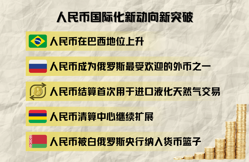 人民币在巴西地位上升。中国人民银行2月7日宣布,近日中国人民银行与巴西中央银行签署了在巴西建立人民币清算安排的合作备忘录。中国人民银行相关负责人表示,巴西人民币清算安排的建立,将有利于中国与巴西两国企业和金融机构使用人民币进行跨境交易,进一步促进双边贸易、投资便利化。