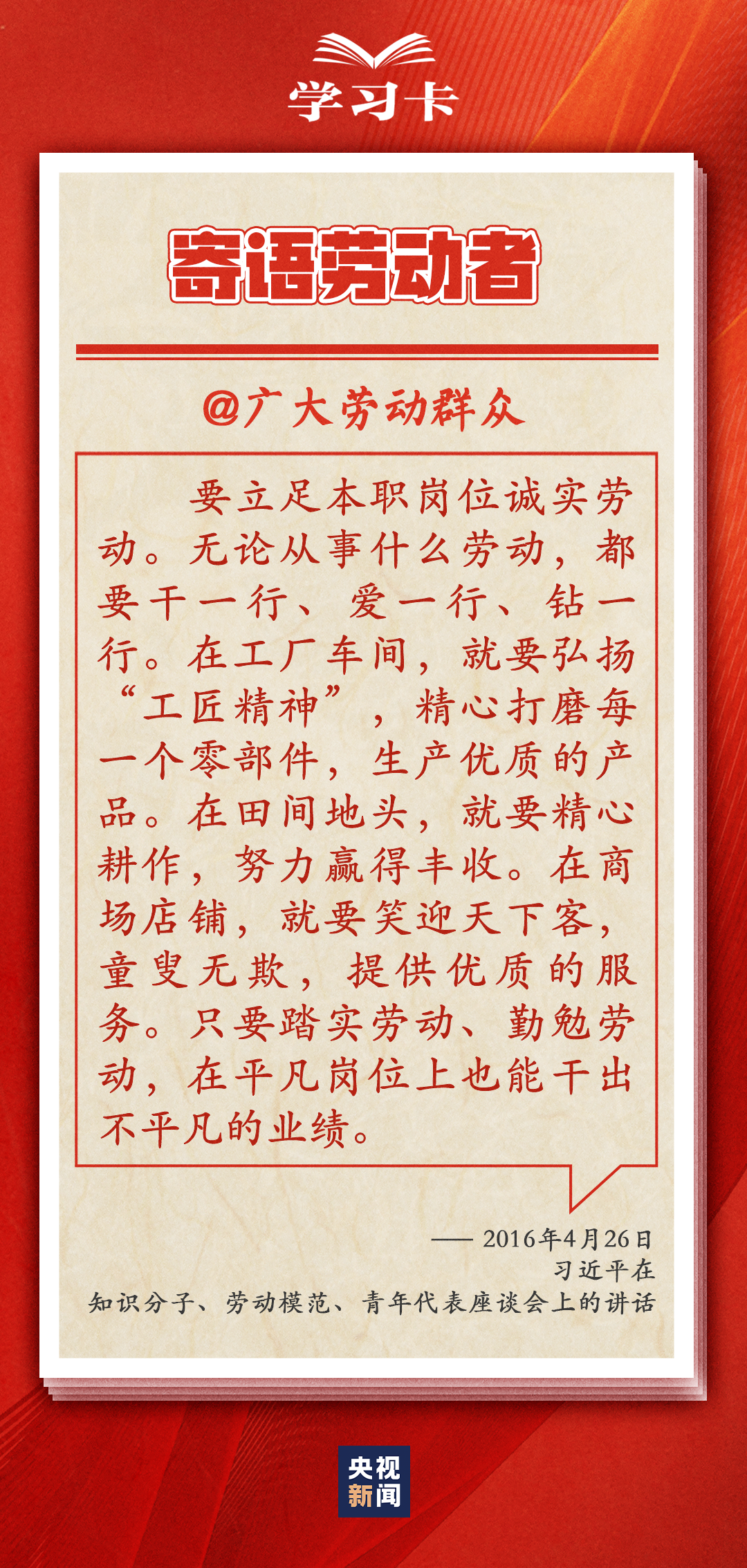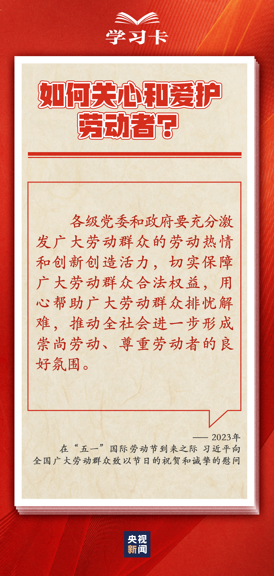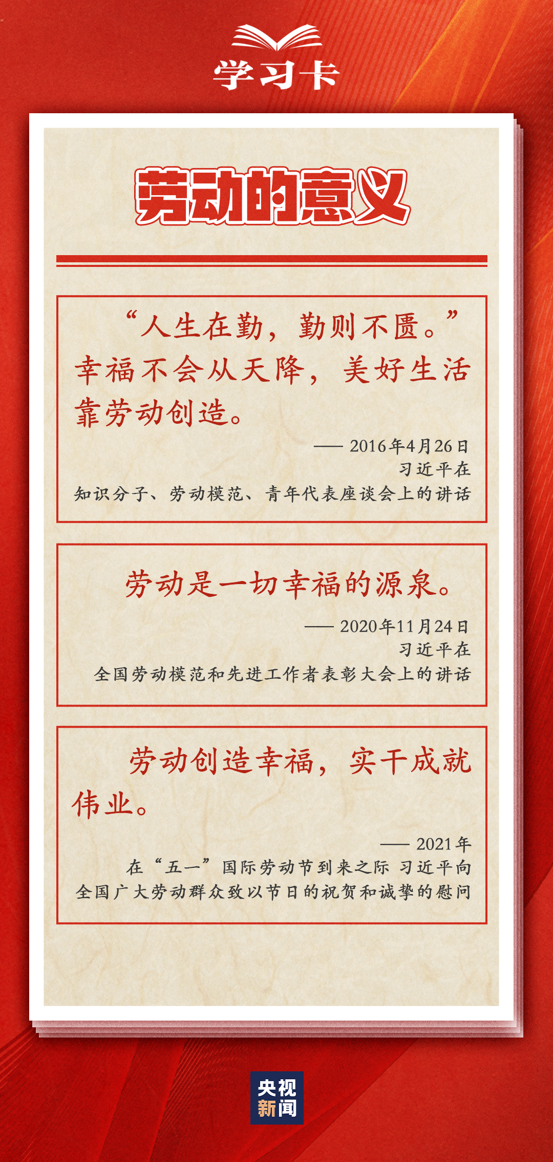 “社会主义是干出来的,新时代是奋斗出来的。”多年来,习近平总书记一直情系全国广大劳动者,多次强调无论时代条件如何变化,我们始终都要崇尚劳动、尊重劳动者。 今天(5月1日)是五一国际劳动节,劳动有何意义?如何关心和爱护劳动者?一起学习↓