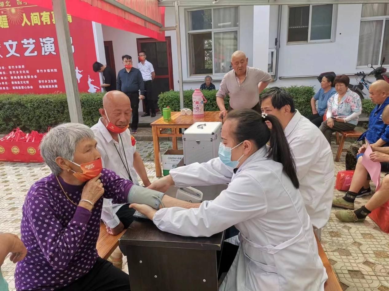 云上黄梅报道(记者 周求安 通讯员 吴宏伟)5月14日,由苦竹乡人民政府、苦竹乡文化站举办的“大爱永无疆 人间有真情”关爱老人公益慰问演出和爱心义诊活动走进苦竹乡享堂村,活动中,苦竹乡新时代文明实践站的志愿服务者和黄梅歌友会成员先后登台表演了长扇舞《没有共产党就没有新中国》、黄梅戏选段 《一月思念》、歌曲《梦中的妈妈》、小合唱《我们的生活充满阳光》等12个节目。整个演出内容精彩、主题鲜明,老人们听得认真,笑的开心。演出结束后,苦竹乡卫生院医护人员来到苦竹乡福利院,为老人免费义诊,送去健康。