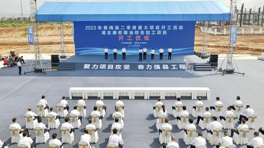 5月18日,黄冈市以“云开工”方式举行2023年二季度全市重大项目开工活动,县委书记刘欲晓在我县分会场介绍了黄梅县二季度重大项目开工情况,并在湖北康宏粮油综合加工项目开工仪式上致辞、宣布项目集中开工。