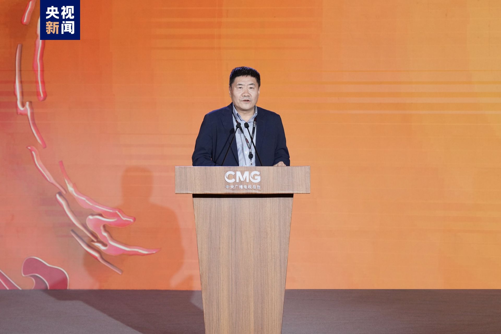 △中央广播电视总台编务会议成员姜文波介绍春晚技术创新亮点