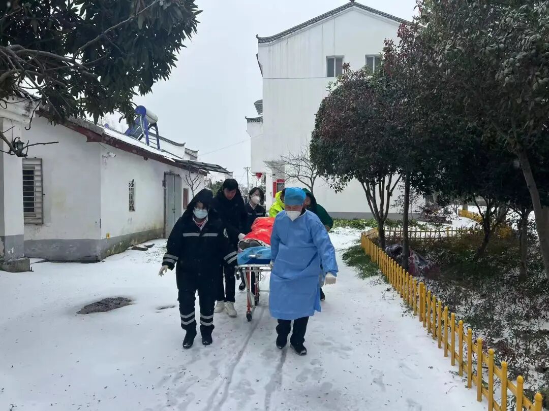 大家合力将老人送上救护车。通讯员夏天供图寒冬冷夜,张荷芳发现75岁的邻居在家中上吐下泻,她赶紧喊来救护车把老人送往医院,之后又全程陪护,直到老人脱离危险。