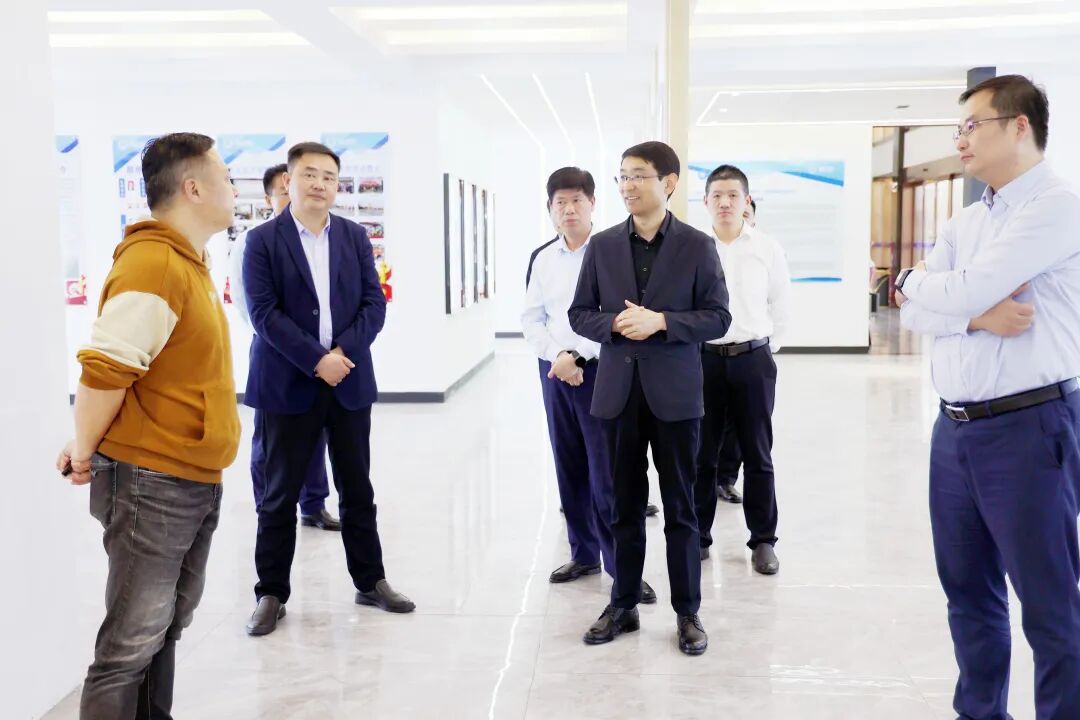在湖北宇星水钻饰品有限公司,刘欲晓、马梁等走进企业展厅及生产车间,听取公司近期工作和华纺链服务纺织服装产业发展情况汇报。