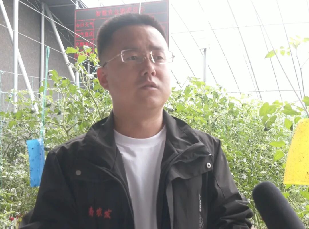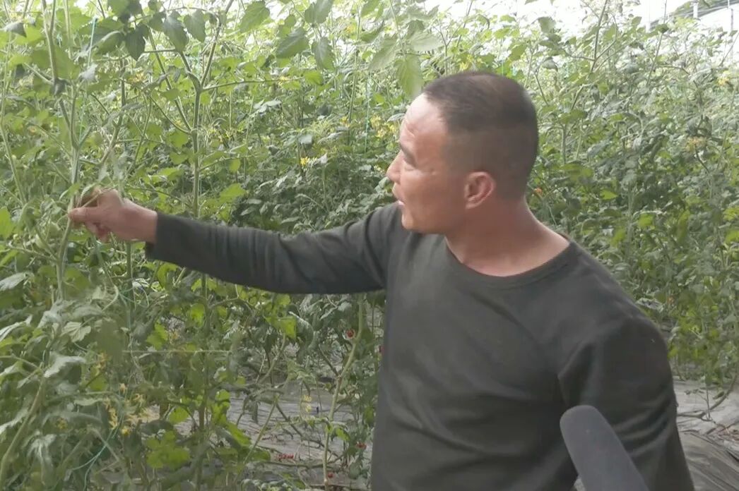 黄冈市智慧农业蔬菜种植示范园黄梅片区高级农艺师 刘廷岗:这个西红柿是从去年10月份种植的,种植周期一般为8个月,从下往上一层一层结果,能结8次,现在就是第八层果。