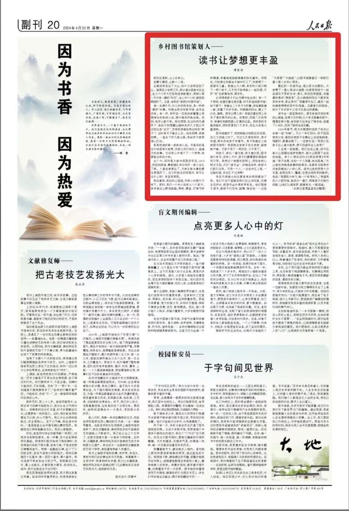 和孩子、家长一番交流,我才意识到,图书馆只有书、没有人不行,孩子们最需要的是陪伴和引导。我把这个难题发到网上,很快有热心网友支招:开办“读书会”、多搞活动呀,把孩子们吸引过来。可我一个人,一边在市区上班,一边跑村里,实在忙不过来啊!