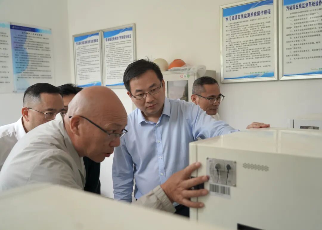 马梁前往濯港镇黄连咀、县城生活污水处理厂,实地察看了解水质和污水处理工艺、雨污分流等情况,仔细询问相关指标数据。