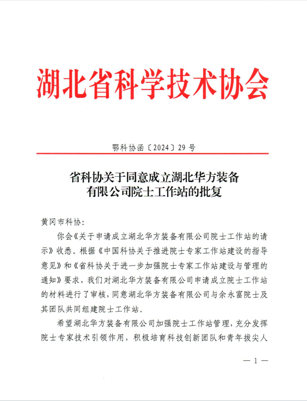 5月8日,湖北省科学技术协会批复同意我县湖北华方装备有限公司与中国工程院院士余永富及其团队共同组建院士工作站。这是自2019年中办、国办发布《关于进一步弘扬科学家精神加强作风和学风建设的意见》后,全省院士工作站建设改革实施新政策以来我县获批建设的首家院士工作站,也实现了近五年来黄冈市院士工作站建设“零”的突破。