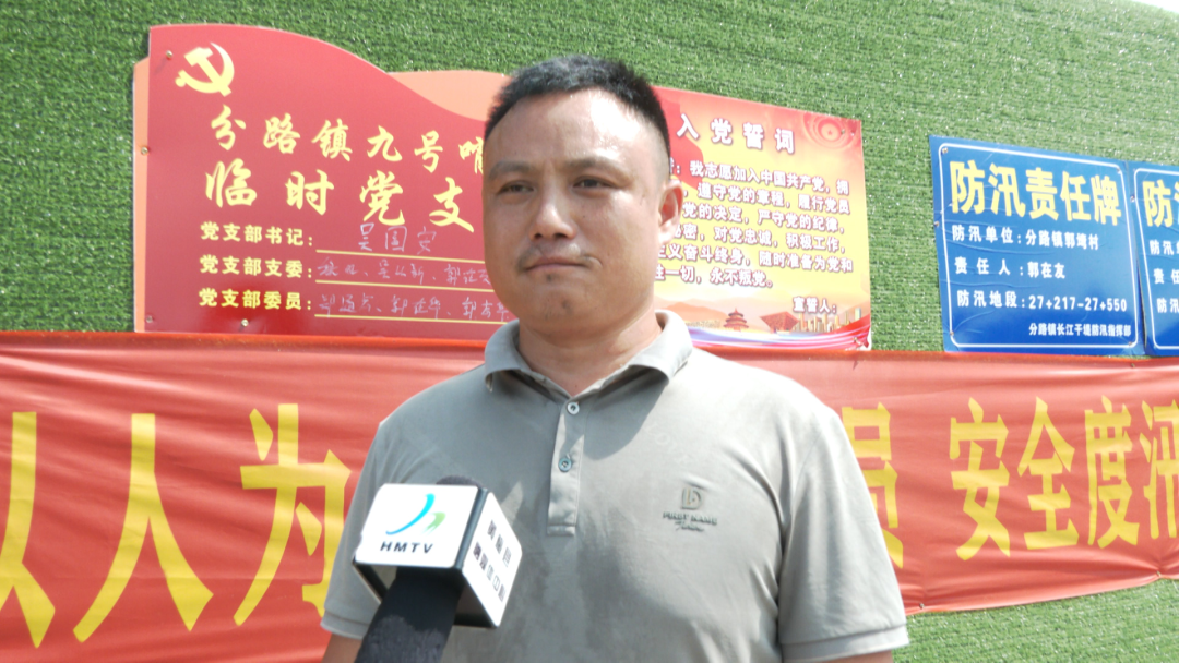 分路镇郭湾村村民 郭在华:只要水没有退,我们坚决按照要求,按时巡堤,标准不减,干劲不松。洪水不退,思想不懈,我们不撤!每一个奋战在一线的防汛人,心中始终都怀着使命和责任。