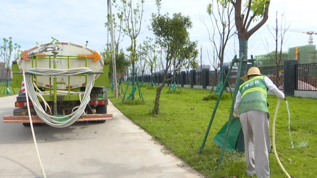 县园林绿化发展中心养护股股长 李萌萌:我们园林部门一直在持续关注天气和气候的变化,今年伏天持续时间比较长,为了应对高温天气,我们采取了一系列措施,首先把最基础的养护工作做好,其次是提前准备好抗旱的物资、车辆、人员,全力做好城区园林绿化的抗旱保绿工作。