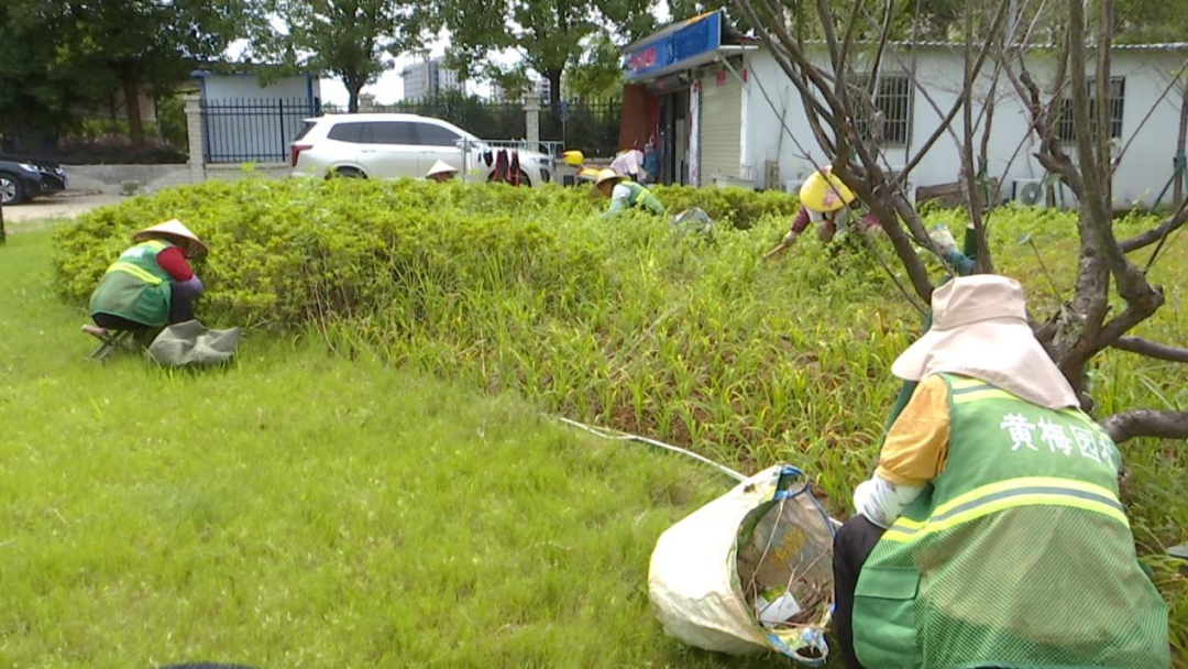 7月17日,记者在县城区迎宾大道、黄梅大道等主次干道看到,园林工人们正在辛勤地工作,他们手持工具,身穿厚重的工作服,头戴草帽,尽管汗水湿透了衣背,却仍然专注地修剪着树木、浇灌着花草。高温下的他们,是这座城市最美的风景。