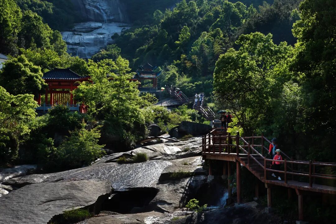 老祖寺,古名紫云山寺,坐落于我县境北端的紫云山莲花峰下,因紫云峰巅由七座峦头相对并列,状若莲瓣相聚,故名莲花峰。其下有盘地,老祖寺在其间,恰如莲心吐蕊,花瓣托心。寺院周围群峰耸立,危岩参天,云雾缭绕,苍松翠竹,风光秀丽,气候宜人,乃不可多得之人间仙境、避暑胜地,景区共有莲花桥、讲经台、菩萨洞、紫云霁雪、龙溪潭等28处景点。