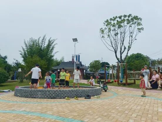 在此之前,这里是渡河村的一片广场绿地,儿童乐园建成以后,让村里儿童有了休闲游玩、放飞自我的场所,成为孩子们每天必到的“打卡点”。