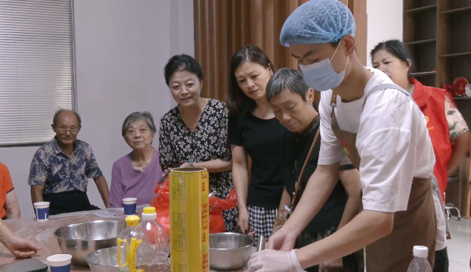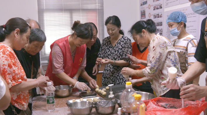 一份无声的月饼,传递着浓浓中秋情!社区不仅准备了月饼制作活动,还安排了诸多娱乐项目。在“海底捞月”游戏中,老人们分为两组,全神贯注地从装满小球的容器中捞取象征着团圆的“月亮”,在欢声笑语中体验了游戏的乐趣,现场洋溢着幸福的气氛。