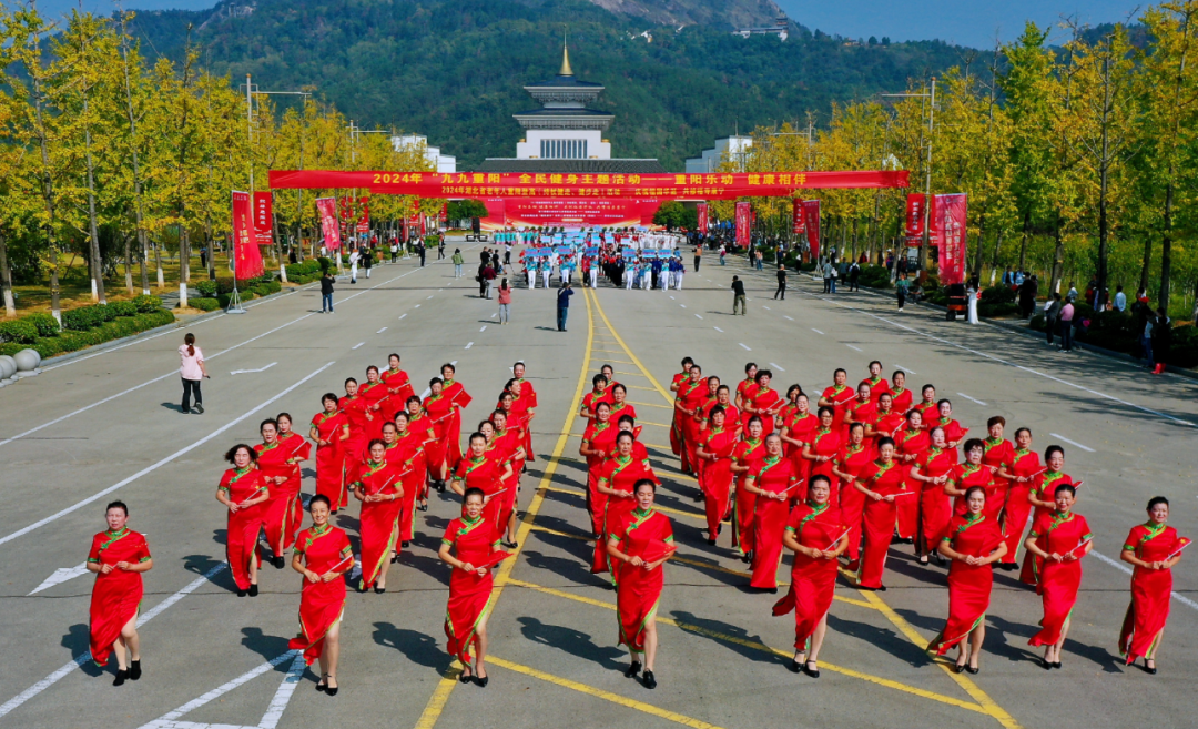 10月11日,2024年湖北省老年人重阳登高主会场活动在黄梅举行,来自全省10多个市州区的老年人在东山问梅村登高望远、欢度重阳节。