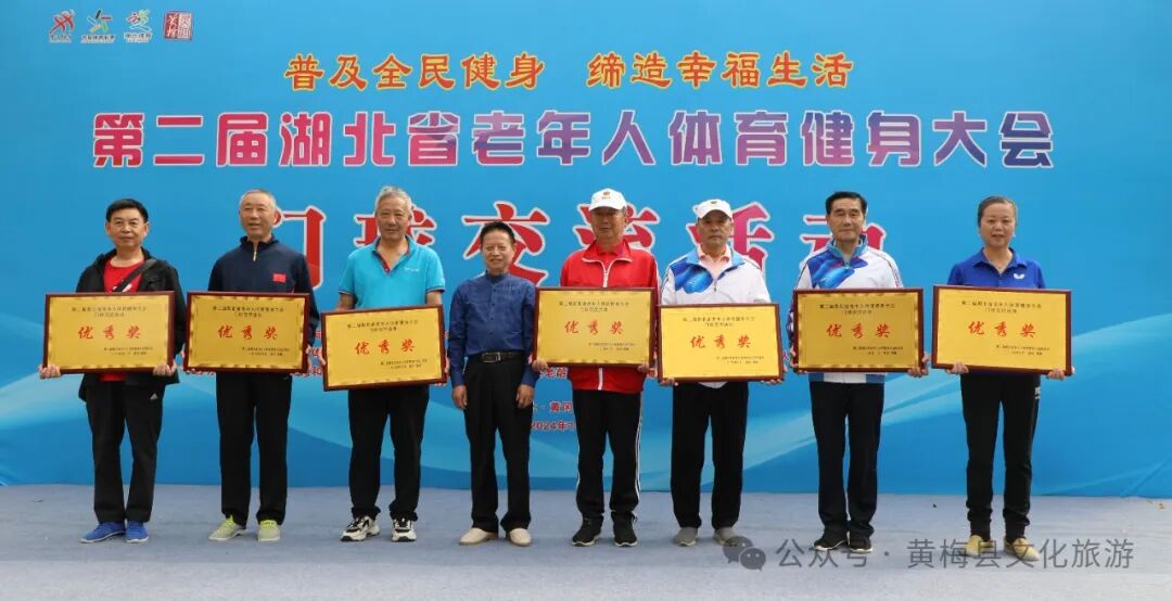 (黄梅县老年人体育协会主席汪朝晖为优秀奖恩施市、黄梅县、随州市、宜昌市、黄冈市、潜江市、武汉市颁奖)
