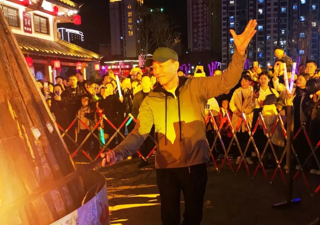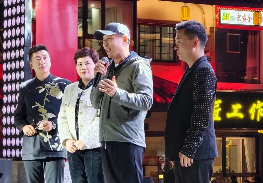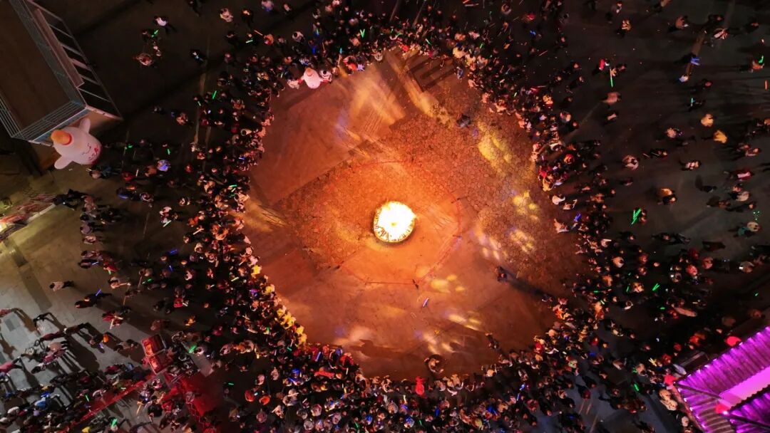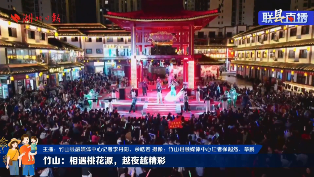 进入11月份以来,篝火晚会是桃花源街区每周五的重头戏。当晚,源外园广场人海如潮,到竹山采风的著名演员王洛勇也来到街区,和游客和市民热情互动,并在直播间向广大网友喊话“心中有爱,就来桃花源”,将现场气氛推向高潮。