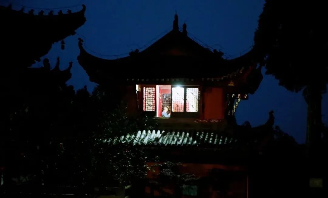 夜静,东山阁檐角上“叮铃”的风铃声,向着远方扩散,宛如在弹奏一曲曲动人的乐章。
