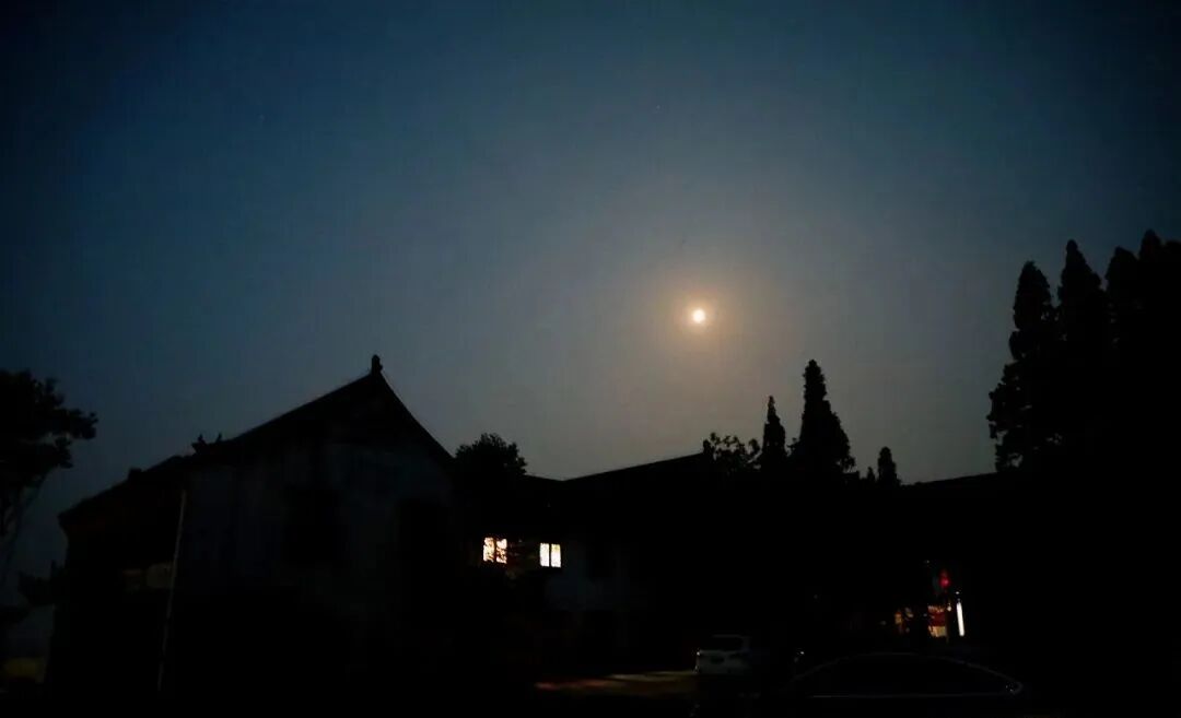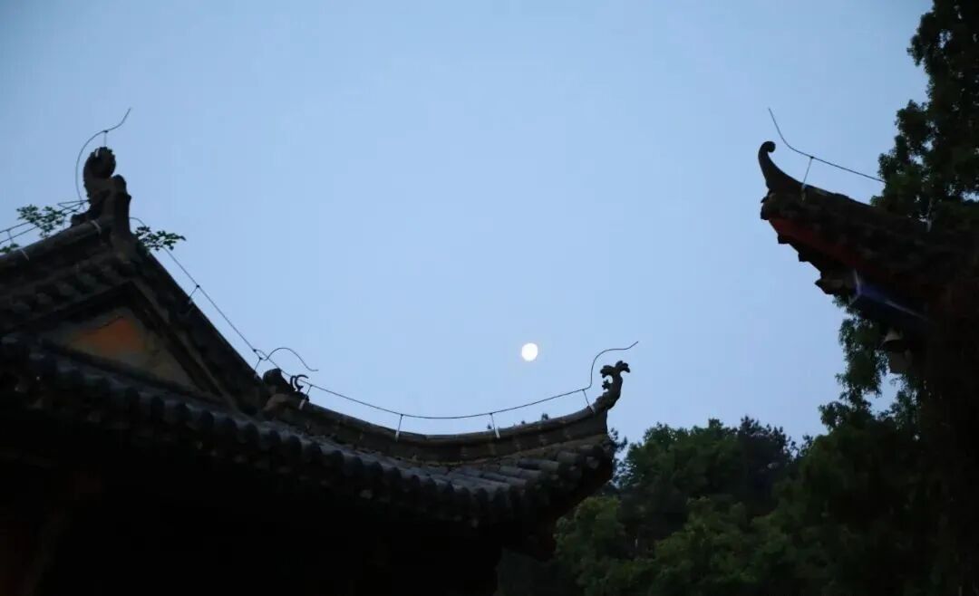 月明山寺远,风细水亭虚。东山的月亮很大很圆,是柔美的、静谧的,在寂寂无语的寺院上空别有一番情韵。一会儿挂在檐角上,一会儿穿行在山林间。