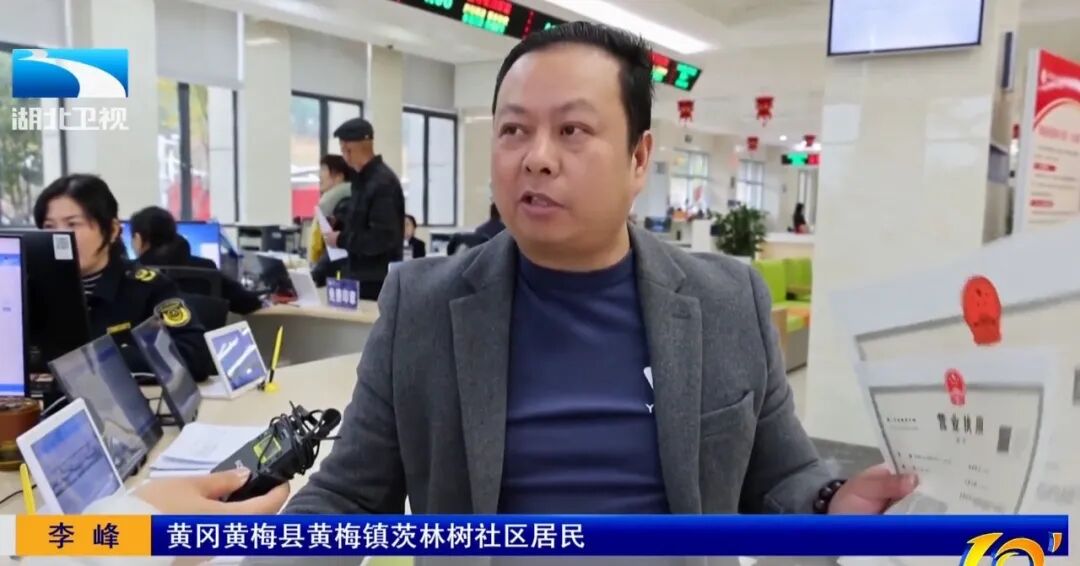 黄冈黄梅县黄梅镇茨林树社区居民 李峰:这个执照我们是要一直等待走流程,现在很便利、很快捷,半个小时我的证就拿到手了。这一转变,源于黄梅县、乡政务服务大厅全面实行的“前台综合受理、后台分类审批、统一窗口出件”政务服务新模式。今年9月,黄梅县启动“单一窗口”改革,打通医保、人社、市场监管等12个部门专网,实现社保服务、经营服务、农业服务等高频事项一个平台办理。以开办便利店为例,现在只需在综合受理窗口提交材料,经后台实时审批后,在综合出件窗口领取办件结果。