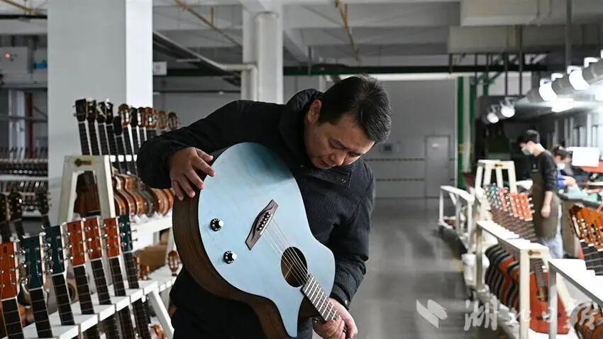 他就是汪锋华,土生土长的松滋人。1995年,21岁的汪锋华从部队退伍后,辗转多地打短工。2003年,他来到广州市花都区一家吉他厂打工,自此与吉他结缘。