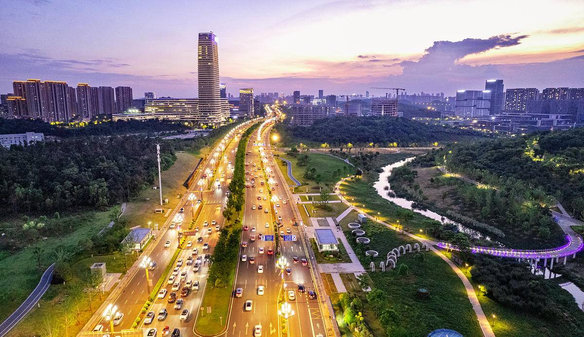 灯火璀璨的武汉光谷高新大道,车来车往,活力奔涌。(湖北日报全媒记者 朱熙勇 摄)