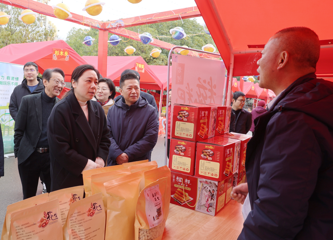 在各乡镇地标优品展区,刘婷与相关乡镇、部门负责人及参展商家亲切交谈,询问产品特色及销售情况。她指出,黄梅文化厚重、物产丰富,要发挥好比较优势,精心打造东坡“三宝”,把更多优质文化产品和服务送到群众身边;要发挥直播带货优势,拓宽黄梅特色产品的销售渠道,促进农民就业增收致富,宣传推介黄梅更多优质产品出圈出彩,高效促进乡村振兴。