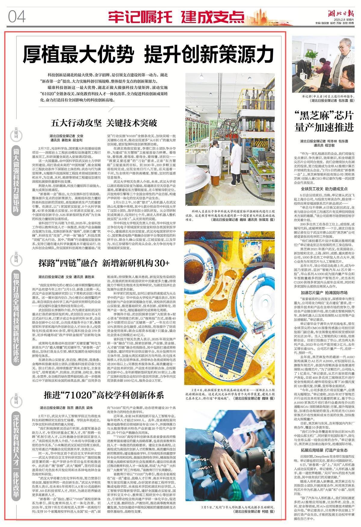 荆楚大地、创新潮涌,科技力量矩阵日益强大、重大成果加速涌现。