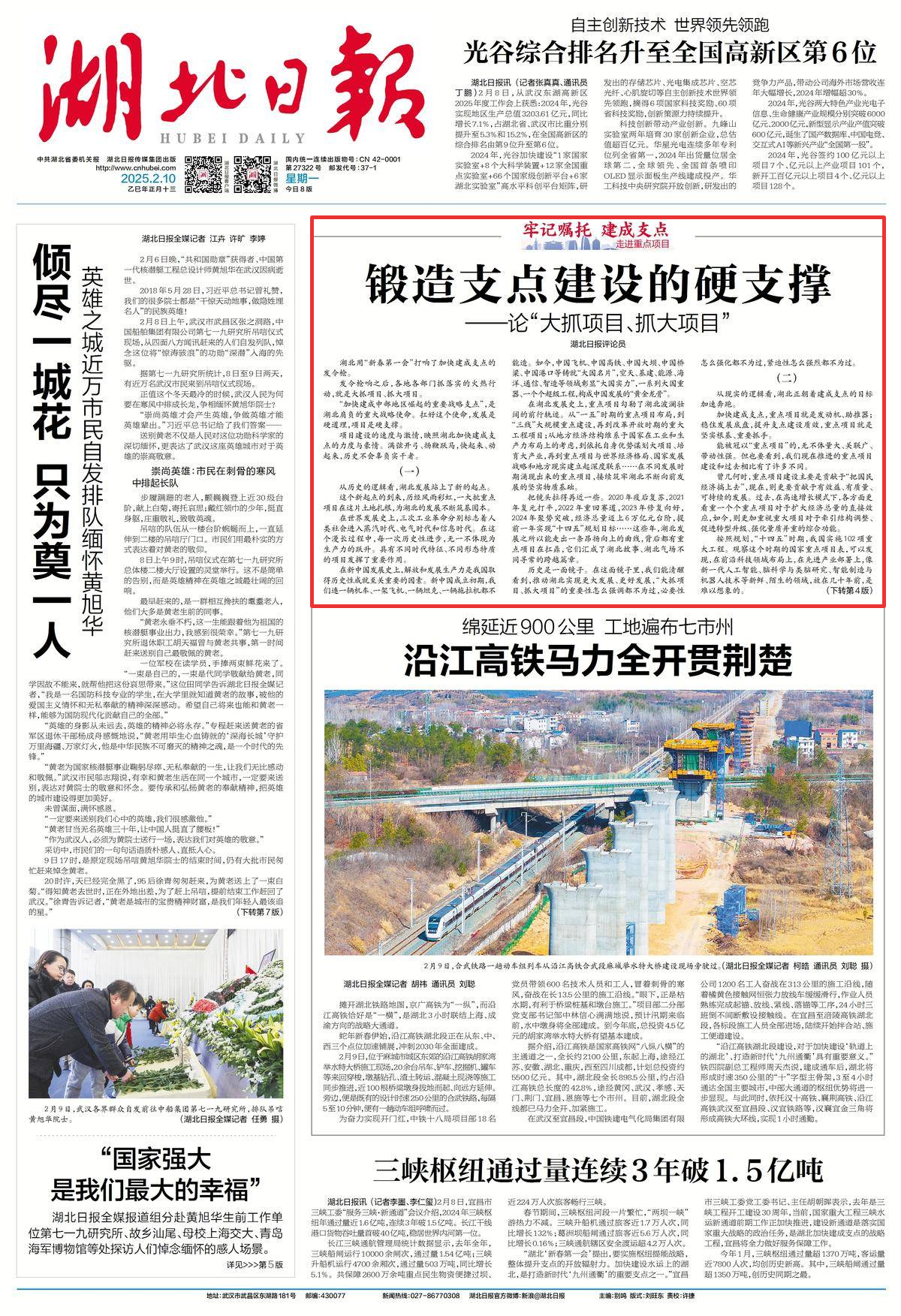 摊开湖北铁路地图,京广高铁为“一纵”,而沿江高铁恰好是“一横”,是湖北3小时联结上海、成渝方向的战略大通道。