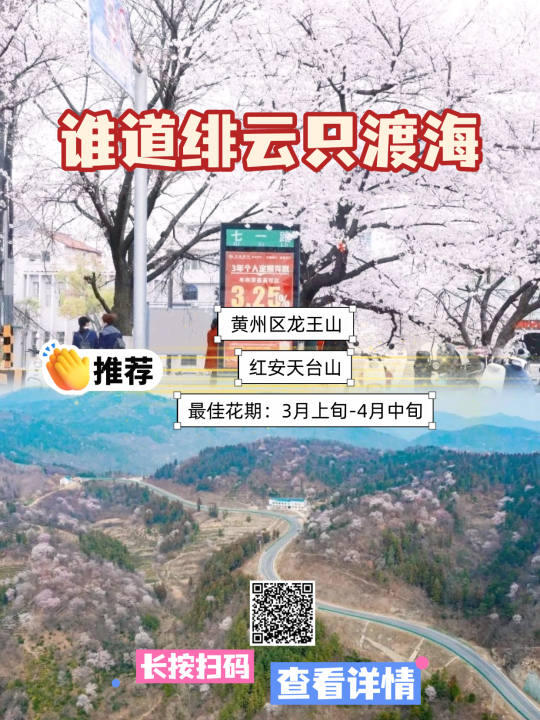 当武汉的赏樱人潮涌动时,黄冈天台山也正以野性磅礴的樱花海,重写"人间三月尽芳菲"的注解——