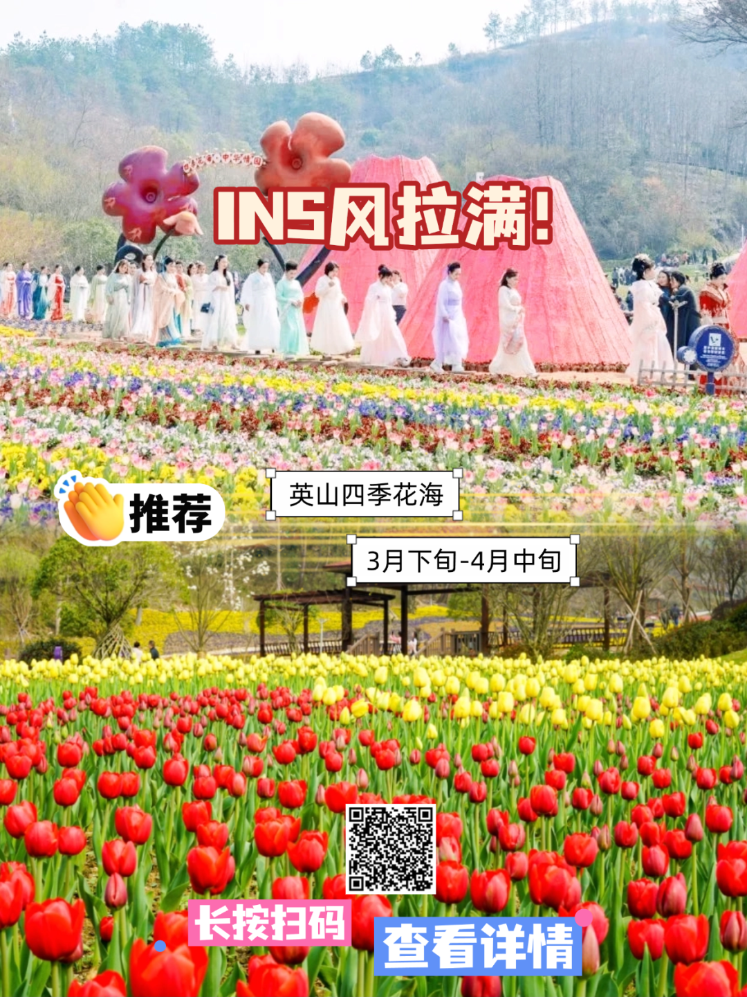 当大别山的晨雾还氤氲着江南烟雨的温婉,英山四季花海的千亩郁金香已绽放成一片沸腾的色谱。
