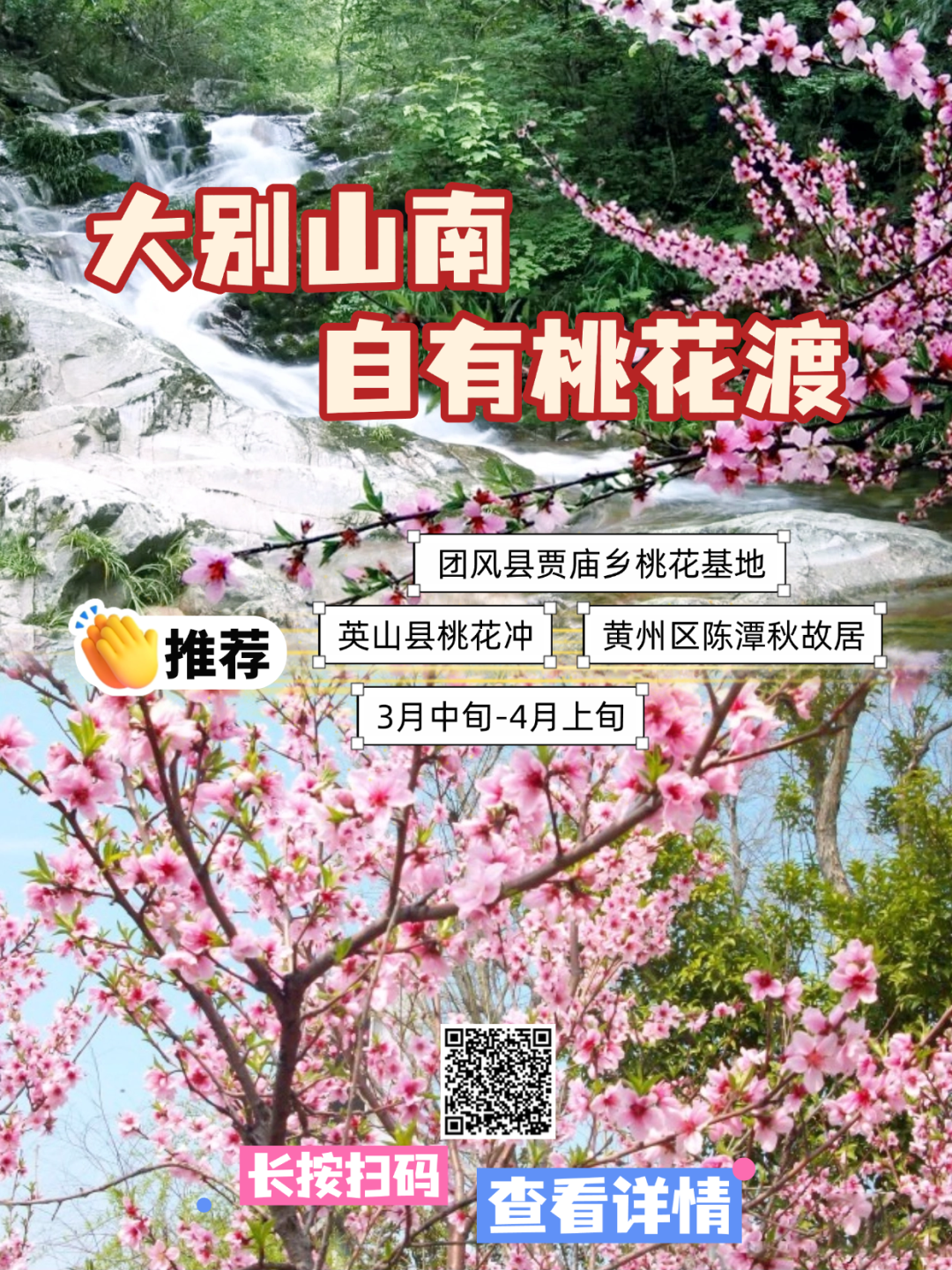 从团风丘陵到英山峡谷,十万株野桃挣脱《诗经》的韵脚,将“宜其室家”的温柔祝祷,泼洒成天地间最恣意的写意长卷。(点击此处查看详情)