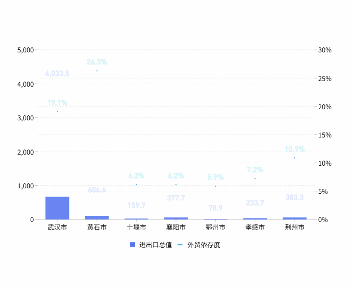 武汉的GDP总量和进出口总值在全省都是第一,但外贸依存度仅为19%。