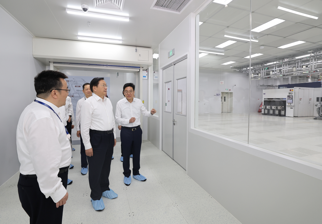 长飞先进武汉基地项目位于武汉东湖高新区光谷科学岛,致力打造国际领先,国内技术最先进、产线最智能的第三代半导体标杆工厂。项目2023年9月1日正式动工,2025年5月28日首片晶圆下线,创造了百亿级投资超大项目建设新的“光谷速度”。王忠林来到长飞先进武汉基地,与企业负责人亲切交流,听取基地建设历程、产品技术、规划布局等情况介绍,察看碳化硅晶圆生产线,见证基地首片晶圆生产下线。王忠林说,长飞先进武汉基地项目填补了我省高端碳化硅器件制造空白,对湖北抢占第三代半导体产业新赛道、构建集成电路全产业链具有重要支撑作用。希望长飞先进持续加大研发投入、强化制造能力、提升产品竞争力,吸引更多上下游企业配套布局、聚链成群,助力湖北打造更具领先性、自主性、前瞻性、完备性的世界级光电子信息产业集群。