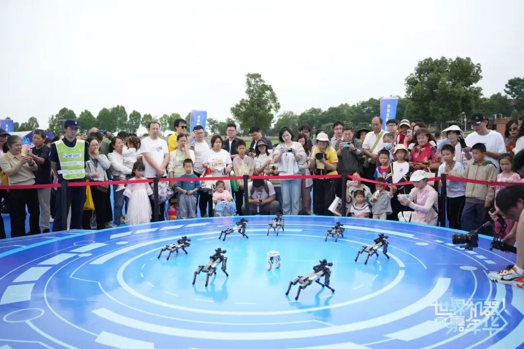 在世界机器人嘉年华现场,一款名为“哮天”的宠物机器狗吸引了大家的目光。这款机器狗体型小巧、动作灵活,能够理解并响应人类指令,可以流畅地完成坐下、跳跃甚至跳舞等动作,支持APP、遥控手柄以及AR、VR技术等多种交互控制方式。