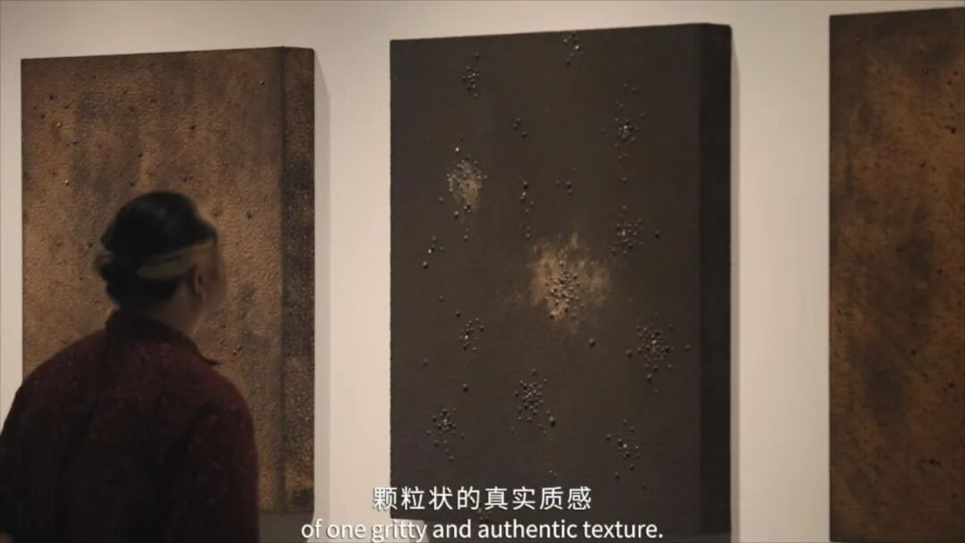 谭大利介绍“尘光”的创作背景,“‘尘光’对我来说,它就是一个微观下的一个颗粒状的真实质感,就像在宇宙当中,你能够感觉到,但是看不见的发自内心的希望的光芒。”