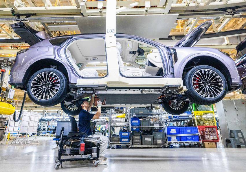 岚图汽车数字化总装车间,工人在流水线上作业。(湖北日报全媒记者 薛婷 摄)