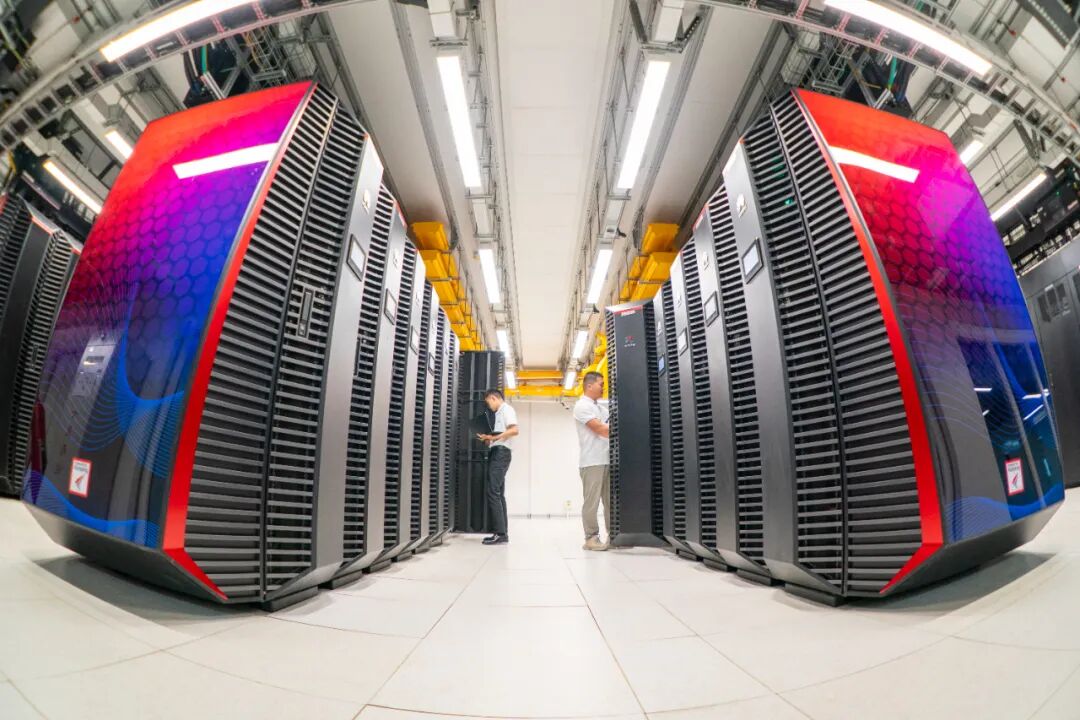 武汉超算中心机房,技术人员在巡控服务器机房(魏铼|摄)