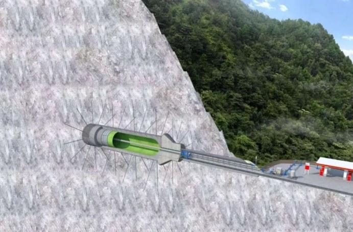 “以往,氢气通常储存于地面钢质球罐中,成本高、储量小,还非常占用地面空间。”中冶武勘工程设计院副总工程师谢亮介绍,他们将从矿山山脚垂直向内挖掘92米,打造一个长30米、直径5米的圆柱形储氢硐室。硐室容积约600立方米,设计储氢量可达5万标准立方米氢气。