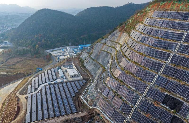 废弃矿山上建起光伏板集群