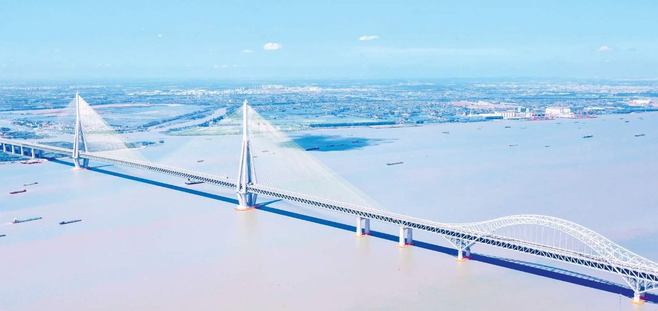 2025年9月9日,由中交二航局承建的世界最大跨度斜拉桥——常泰长江大桥正式通车运营。常泰长江大桥将常州与泰州两市紧密相连,通车后两地通行时间将从1小时20分钟缩短至20分钟左右。常泰长江大桥是目前国内唯一的公铁合建双层复合型过江通道,大桥跨江段全长10.03公里,其中公铁合建段长5.3公里,由一座跨主航道的跨径1208米钢桁梁斜拉桥、两座跨专用航道的钢桁拱桥和一座非通航孔钢桁梁桥组成,以4项全球首创设计,创下最大跨度斜拉桥、最大跨度公铁两用钢桁拱桥的世界纪录。