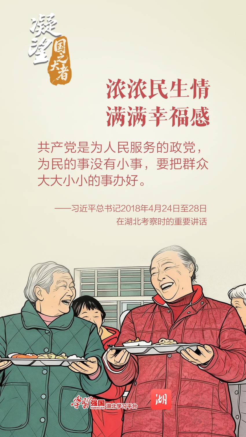2024年11月5日,习近平总书记来到咸宁市嘉鱼县潘家湾镇四邑村,走进村里的养老服务驿站察看便民服务情况。站在养老服务驿站食堂价目表前,总书记仔细察看当天菜单。总书记指出,要进一步加强党建引领,抓住“一老一小”这个重点,更加精准有效地为群众排忧解难。