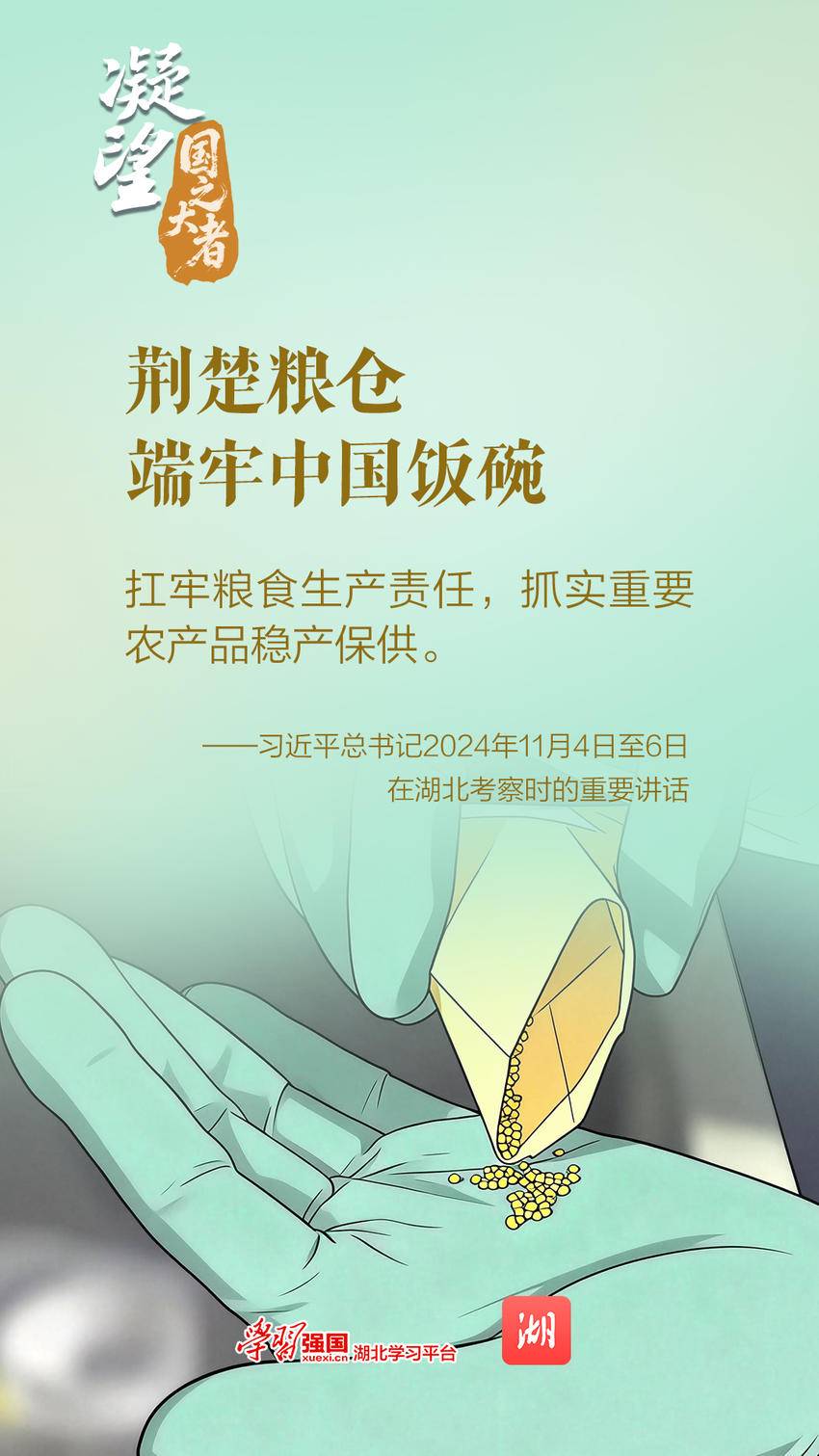 知责担责、知重负重。作为全国13个粮食主产省之一,湖北正加快建设农业强省、打造新时代“鱼米之乡”,以科技创新为引领,为牢牢端稳中国饭碗贡献荆楚力量。