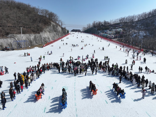 1月17日,“襄阳冰雪嘉年华”举行。“雪地毛毛虫”团队竞速赛(如图)、亲子雪圈赛跑等娱雪项目让各年龄段游客都能参与,找到属于自己的冰雪乐趣。新华社发(杨韬摄)
